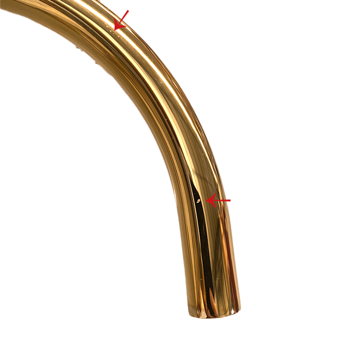 The product has a very small peak along the tube. The finish on the mixer body and handle is uneven.
