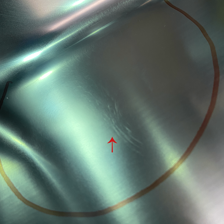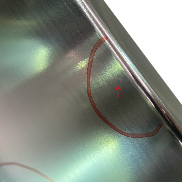 Produto apresenta ligeiro dano na frente da cuba do lado esquerdo. Na lateral direita apresenta ligeiros riscos. Na aba interna da cuba apresenta um pequeníssimo risco.