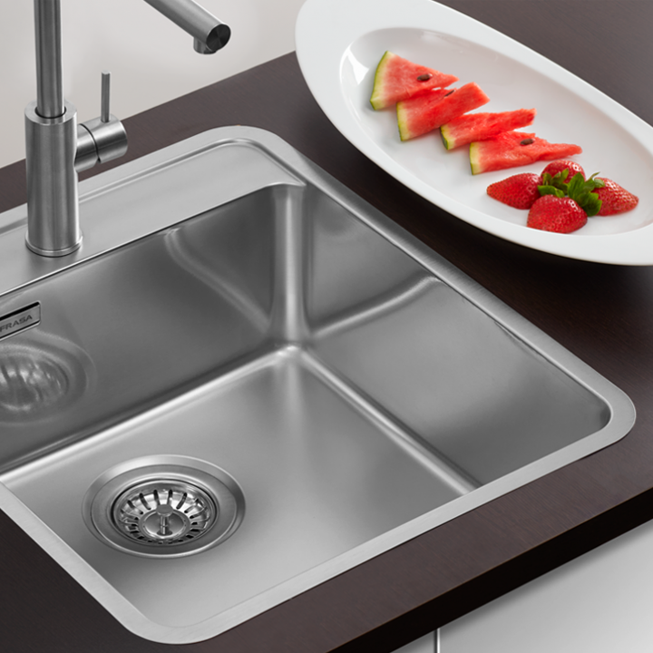 O lava-louça FRASA Nildo 40 F/T contempla uma cuba de 40 cm de instalação à face ou superior, poupando espaço para a colocação da misturadora.