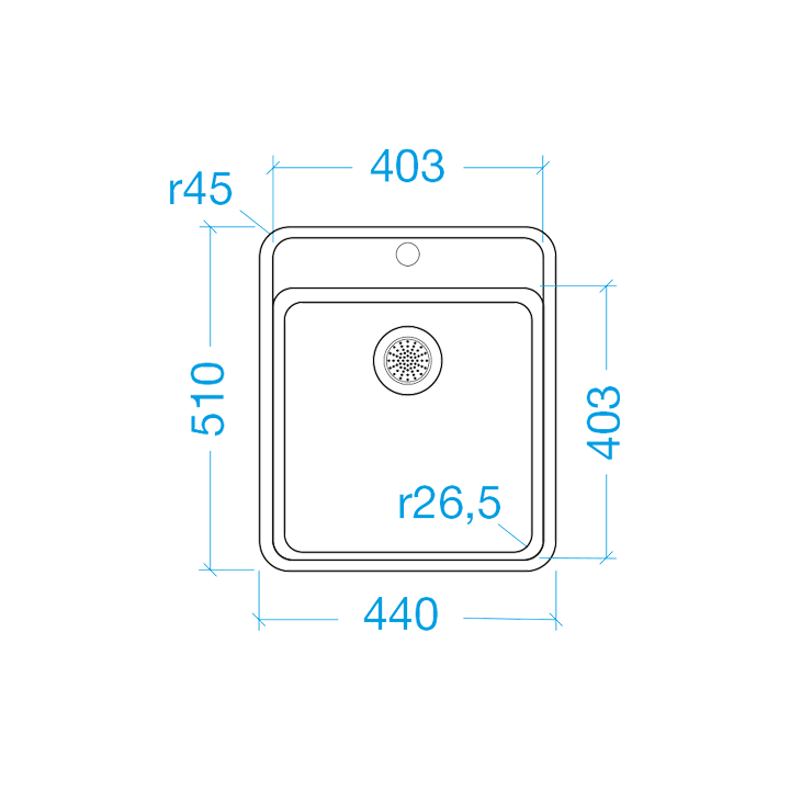 - Dimensões das cubas: 403x403 mm