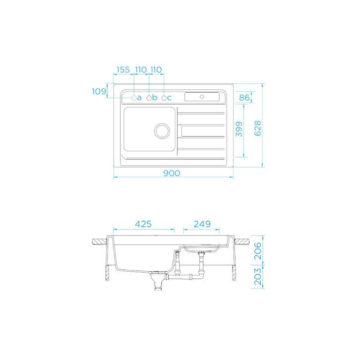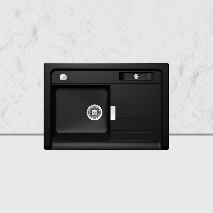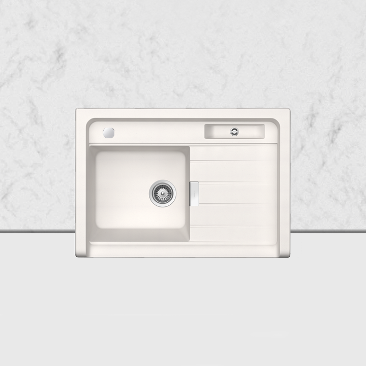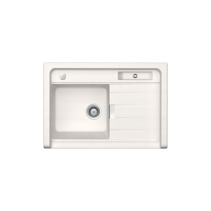Visto como uma peça desigual na cozinha campestre, o Grando M-100 de instalação superior dispõe de uma cuba de 42 cm e de um escorredor que comtempla um pequeno rasgo que permite a colocação de acessórios.